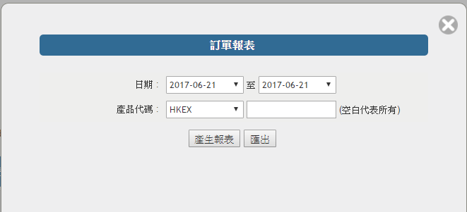 b) 選擇 ”日期” 或 ”產品代碼” (如適用),然後按下 ”產生報表”,便會顯示訂單記錄